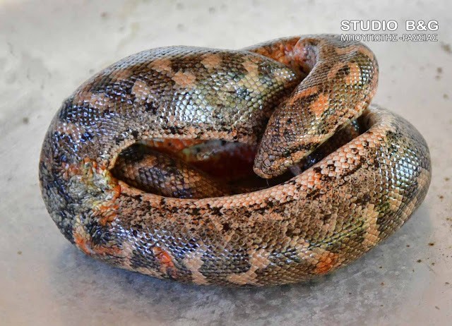 Έναν ελληνικό βόα της άμμου εντόπισε ο αγρότης Άρης Τσιρίκος από τα Λευκάκια σε τοποθεσία στην περιοχή του Δρεπάνου του Δήμου Ναυπλιέων.
